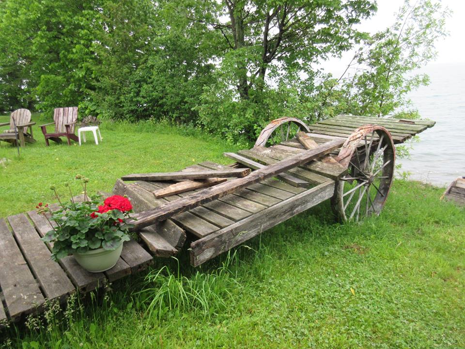 Meg and I set off on the 11th for Petrel Point, their place on the Bruce. Our annual spring dinner with Sophie Champagne that night and then up early (and none too bright) to drive to Tobermory and the ferry on a mizzly day. We always have a full-out unpacking, shopping and settling in that weekend. This year the ground was so wet that you could see standing water, even in the meadow (So much rain-you still can). The new owner is so busy getting the cottages ready for July guests that he had no time to repair and install the dock (which was wrecked in the fall when he took it out of the water).
